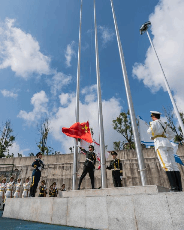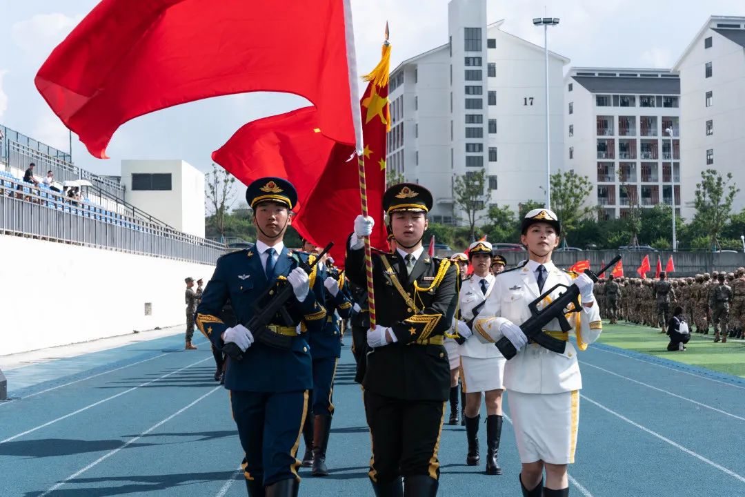 迎风招展的国旗下,庄严的国歌声中,军训总结大会拉开帷幕。