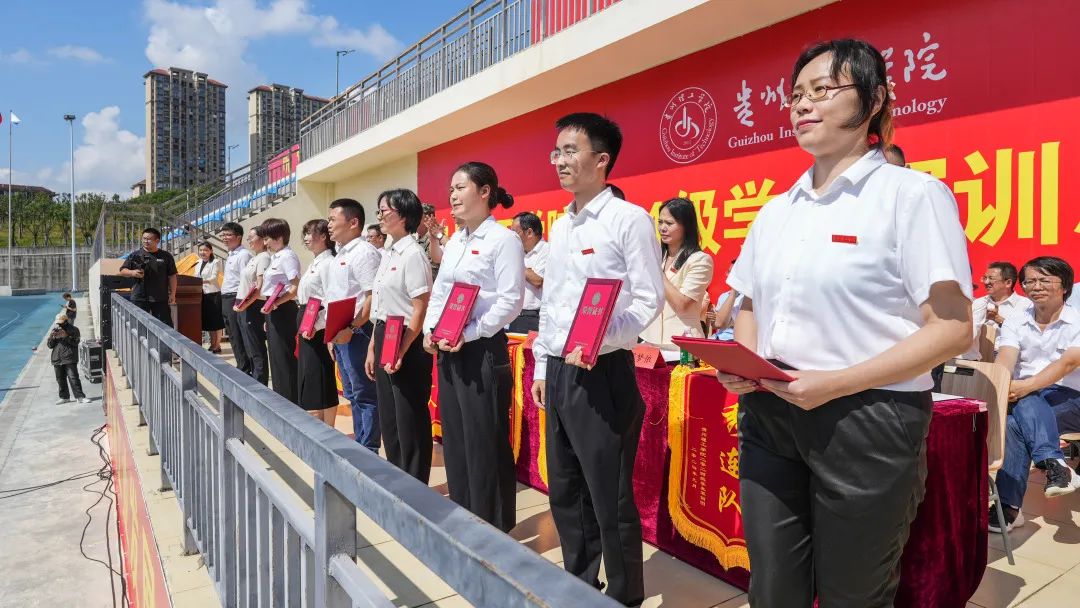 校党委副书记、2024级学生军训团政委高勇宣读《贵州理工学院2024级学生军训团关于表彰学生军训先进集体和先进个人的决定》。
