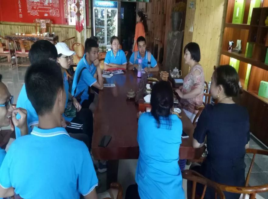在此前向乡政府的相关人员了解到,落别乡一直都有种茶的传统,实践团队来到了落别乡牛角广场鸿森茶业了解当地的茶产业发展。鸿森茶业是落别乡轻工业园区的三大公司之一,拥有一万两千亩的茶叶基地和一个加工厂。公司汪总经理热情接待了实践团队,并对公司业务发展作了详细介绍。他谈起在落别乡开设茶厂的初衷,是为了传承当地的茶文化,形成具有当地文化的特色茶产业体系,打造出六枝的特色茶品牌,让更多的人了解六枝及六枝文化,将六枝和六枝茶产业推向全国乃至世界。为用科学的方法研发出具有当地茶叶特色的品种,鸿森茶业设立有自己的一套科学的经营方式并与高校合作成立研究机构和培养相关科技人员,通过不断的实验和探索形成一套相匹配的加工工艺,最大限度的保留当地茶的原味。汪经理说“茶是我们的国宝,最早在2100年前的丝绸之路上被中华民族推广到世界,并成为最受欢迎的饮品之一,我们有义务也有责任在前人的基础上去完善它的工艺和传承中华茶文化。”目前,他们还与乡政府合作,对贫困户进行技能培训,提供相应岗位增加他们的收入,这些也进一步促进了当地总体经济的建设发展。他表示,目前公司正处于起步阶段,只有线下销售,线上销售在紧锣密鼓的策划中。