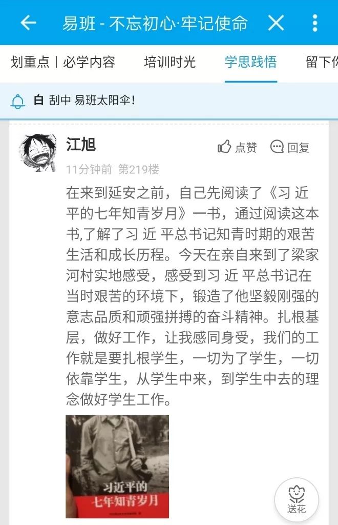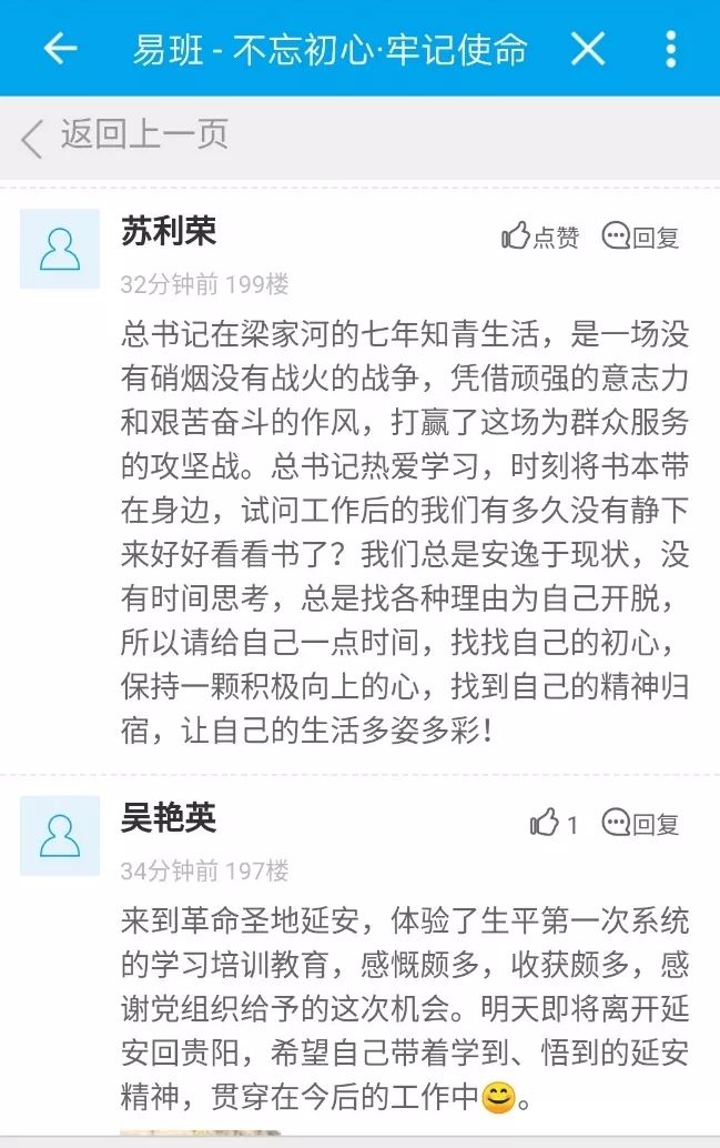 梁家河一天的学习让全体学员思潮澎湃,大家纷纷在校易班平台谈心得、话感悟。