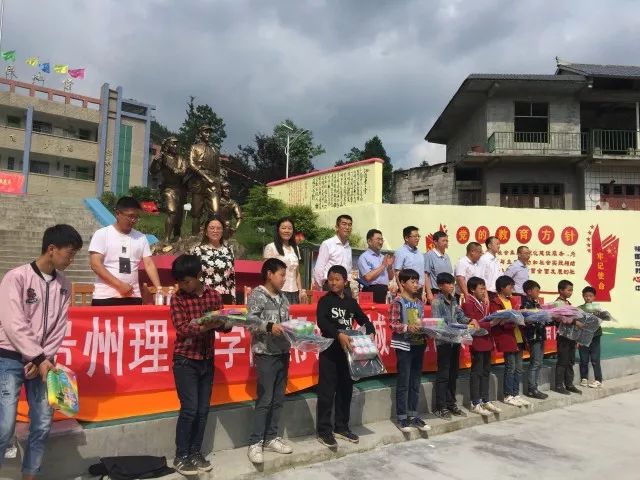随后,曾羽一行在水城县相关领导的陪同下,前往水城县陡箐镇冷坝小学开展教育扶贫捐赠活动,捐赠了一批学习、体育用品,改善学习条件。并向冷坝小学10名建档立卡贫困户子女,每人捐赠了1000元的助学金,帮助他们顺利完成学业。曾羽询问了孩子们近期的生活和学习情况,与他们亲切交流,鼓励他们认真学习,茁壮成长,争做祖国和家乡建设的栋梁。