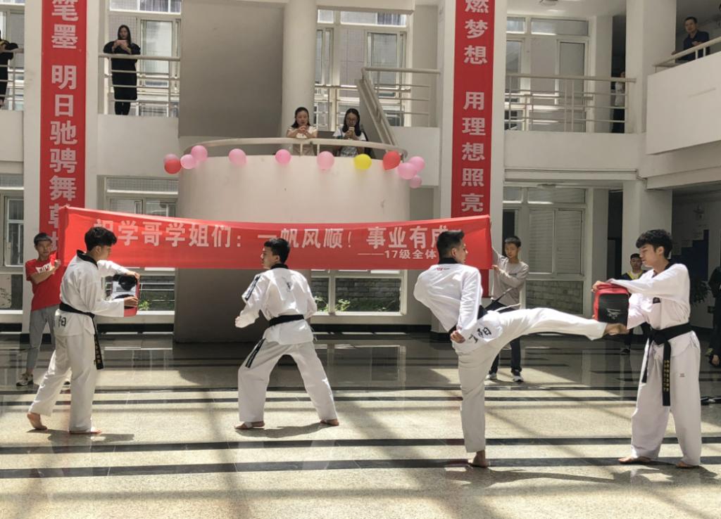 毕业典礼上,学弟学妹们为即将踏上新征程的学哥学姐们献上了精彩的表演,节目赢得了师生们阵阵喝彩和雷鸣般掌声。