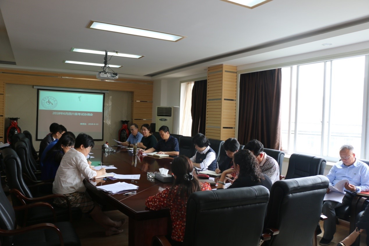 会上,教务处相关责任人通报了2018年6月全国大学英语四、六级考试基本情况并就本次考试相关工作作了部署与安排。
