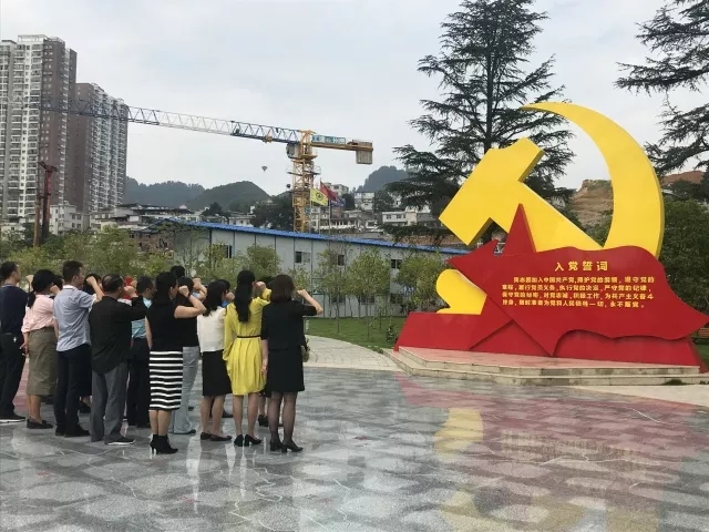 在王小红的陪同下,乐游棋牌一行先后参观了黔南民族师范学院思政党建综合体——五星思政党建主题广场、丹心斋思政党建书屋、清净堂,文化碑林以及民族文化展览馆。