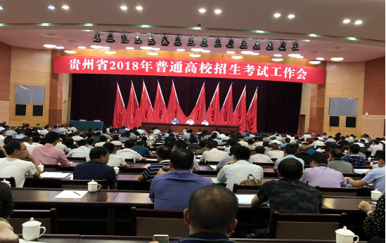 本网讯(招生就业处 李源)5月22日,贵州省2018普通高校招生考试工作会议在金阳大酒店会议中心举行。省教育厅厅长邹联克、省招生考试院院长田军出席了会议,会议由省招生考试院党委书记邓厚勇主持,全省各高校、教育系统及各地州教育局相关负责人参加会议。乐游棋牌党委副书记张波率招生就业处相关负责同志参会。