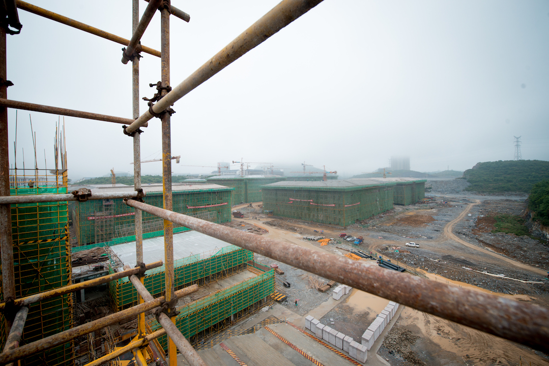 5月10日清晨,细雨蒙蒙,微凉的晨曦,贵州理工学院新校区建设现场,驻足望去,杂草丛生的荒坡已然不见,映入眼帘的是耸立的塔吊,一栋栋单体建筑,似乎向笔者一行昭示着过去忙碌、紧张的一千多个日夜。