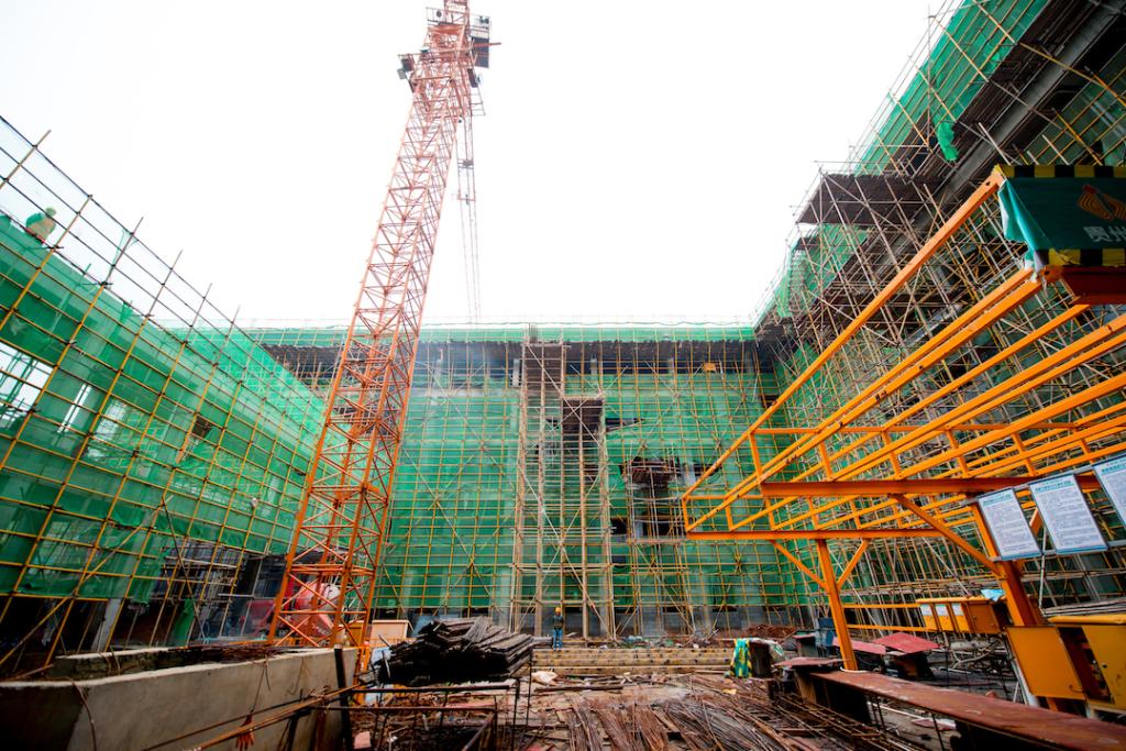 据新校区建设指挥部工程部负责人介绍,目前一期核心区的图书馆已完成主体框架五层部分梁板钢筋绑扎及混凝土浇筑以及满堂脚手架的搭设,正在进行五层框架施工;南书院公共教学楼主体框架工程全部完工,正在同步推进二、三、四、五砖砌筑、墙体抹灰工作;教学实训楼主体结构已全部完成,正在同步推进四、五层砖砌筑、一、二、三层抹灰工作;1、2、4、5号学生宿舍主体结构已全部完成,正在同步推进二次结构浇筑混凝土及墙砖砌筑、抹灰等工作;3号学生宿舍由于地质条件影响主体框架施工已到三层;师生食堂已完成主体框架施工,正在同步推进二次结构浇筑和砖砌筑工作。