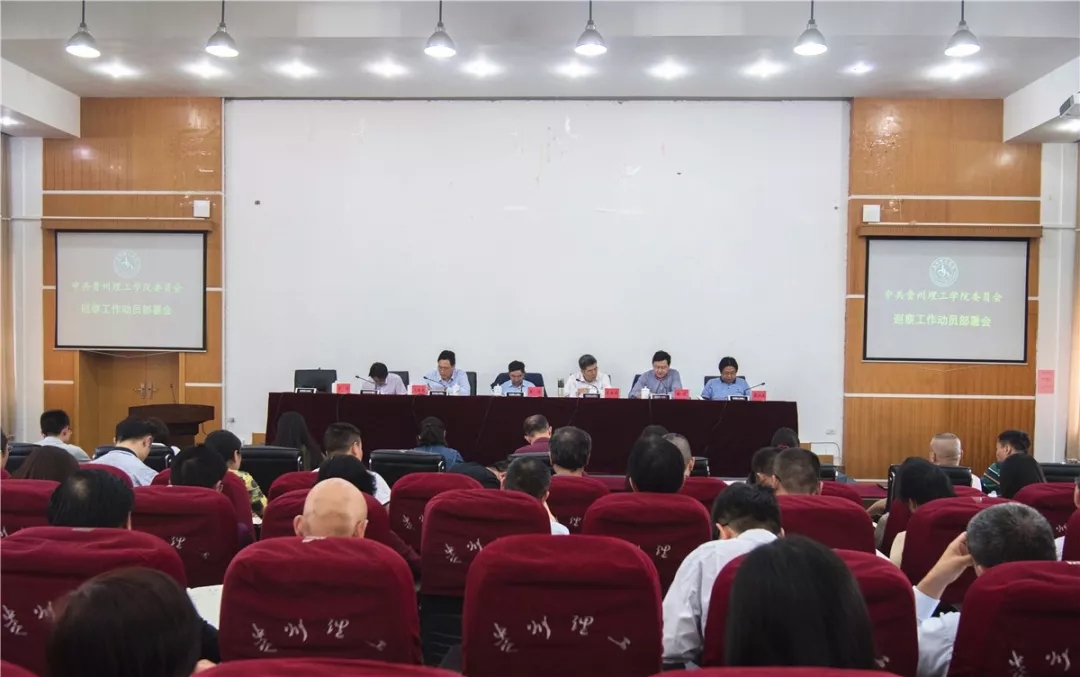 本网讯(校纪委 张妤)为进一步落实学校党委从严治党主体责任,夯实学校党委管党治党政治责任,根据中央、省委关于开展巡视巡察工作的有关要求和省教育厅关于各高校开展内部巡察相关指示精神,5月15日下午,中共贵州理工学院委员会巡察工作动员部署会在喀斯特报告厅召开。乐游棋牌曾羽、龙奋杰、张波、王建平、苏向东、李滚出席会议,各部门主要负责人、各学院、教学部党政主要负责人、校巡察办和巡察组全体同志参加会议。会议由校党委副书记张波主持。