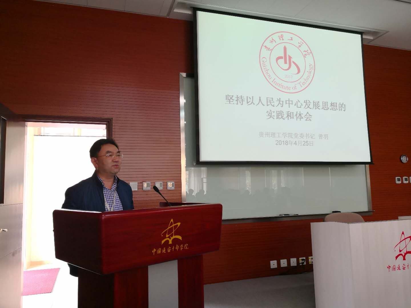 曾羽的发言题目是“贵州理工学院坚持以人民为中心发展思想的实践与体会”,分别从贵州理工学院的创建是贵州人民的心愿、贵州理工学院的建设发展要体现贵州人民的意愿、贵州理工学院以学生教师为中心的建设理念等方面,回答了为什么建贵州理工学院、建什么样的贵州理工学院和怎么建贵州理工学院三个问题。