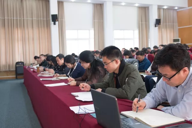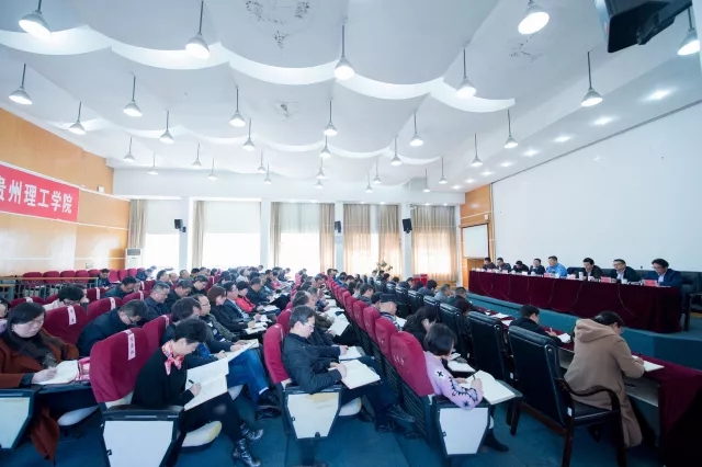 校党委书记曾羽在讲话中指出,2018年对于贵州理工学院是从严治党的关键之年,合格评估的攻坚之年,新校区建设的收获之年,教育教学改革的提质之年。在从严治党方面,要围绕党建工作,进一步加强党务干部配备并做好干部教育工作;要搭建平台、载体和抓手有力地推进基层党建工作的开展;要结合省委巡视组对高校巡视反馈的意见,对标查找问题并进行整改;同时要进一步加强校内巡察工作的逐步推进。在本科合格评估工作上,要将合格评估工作作为当前学校的一项重要政治任务,全体教师必须在数据统计、工作开展及成果体现上认真对待,不打折扣地扎实推进,时刻以饱满的精神面对迎评检查。在加快新校区建设上,要按照建设教育教学功能基本完善的新校区的要求,快马加鞭地做好教学条件保障项目建设,严格按照工程建设规范进行建设。同时要在目标考核上推进改革步伐,学校的领导班子成员和处级干部要把今年的主要工作“项目化”,年终进行项目考核和验收,各单位部门通过工作“项目化”进一步明确任务目标,确保工作落地;要加强监督执纪问责,不按时完成工作任务就是失职,要将存在的老大难问题、关键性问题、影响大的问题进行梳理,消化解决。会上,曾羽还就毕业设计、学风建设、就业工作、人才引进、科研工作等作指导性要求。