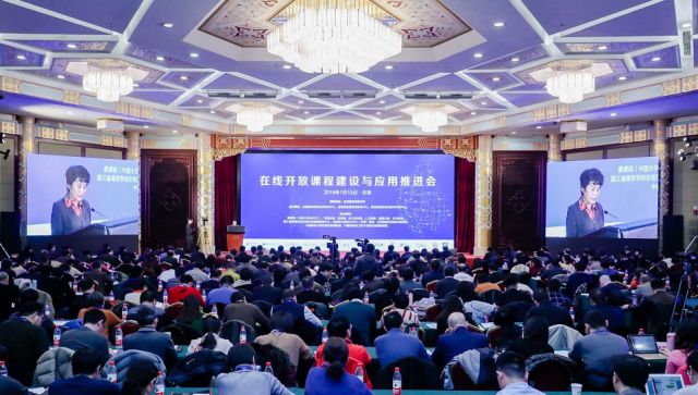 本网讯(电气与信息工程学院 刘帆) 2018年1月15日,由教育部高等教育司指导,全国高等学校教学研究中心、教育部在线教育研究中心和教育部高等教育教学评估中心联合主办的“在线开放课程建设与应用推进会”在北京友谊宾馆隆重召开。来自全国多省教育行政部门、170余所高校的领导嘉宾、教师代表,以及多家课程平台、出版社、教学研究机构负责人参加会议。