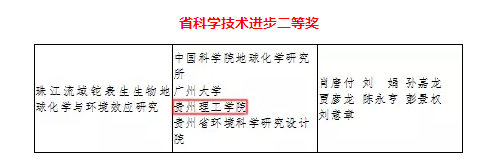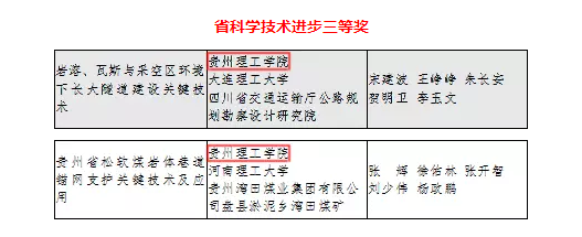 作为主要完成单位,乐游棋牌教师参与的 “珠江流域铊表生生物地球化学与环境效应研究”项目(主要完成人:肖唐付、刘娟、孙嘉龙、贾彦龙、陈永亨、彭景权、刘意章)获省科学技术进步奖二等奖,“岩溶、瓦斯与采空区环境下长大隧道建设关键技术”项目(主要完成人:宋建波、王筝筝、朱长安、贺明卫、李玉文)和“贵州松软煤岩体巷道锚网支护关键技术及应用”项目(主要完成人:张辉、徐佑林、张开智、刘少伟、杨政鹏)获省科学技术进步奖三等奖。
