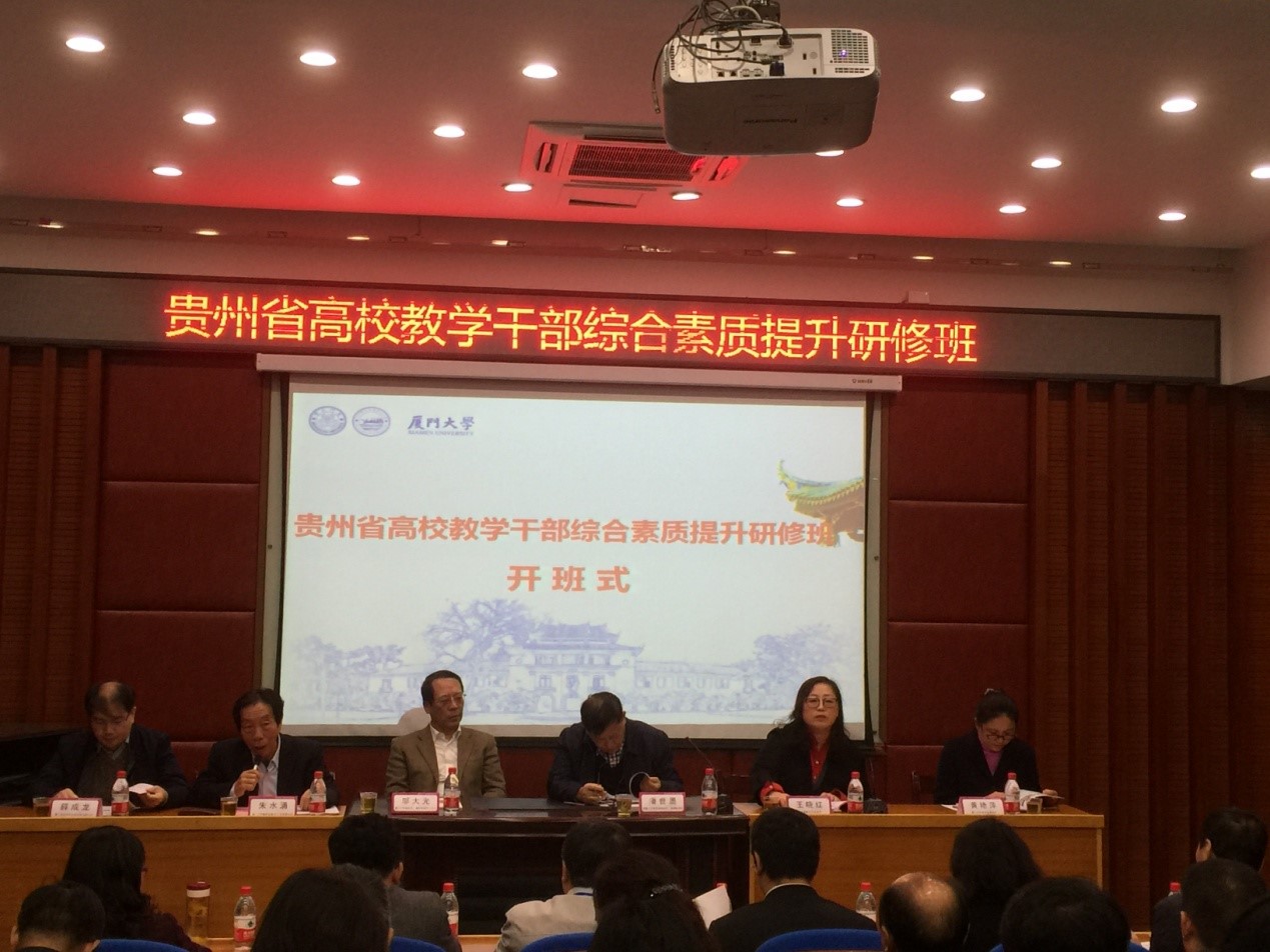 本网讯(教务处 徐波) 2017年12月18日,由贵州省教育厅主办,厦门大学国家级教师发展示范中心承办的“贵州省高校教学干部综合素质提升研修班”在厦门大学隆重开班。全省各本科高校分管教学工作乐游棋牌、教务处负责人及教务科工作人员参加此次研修。乐游棋牌副校长梁杰率教务处相关人员参加。