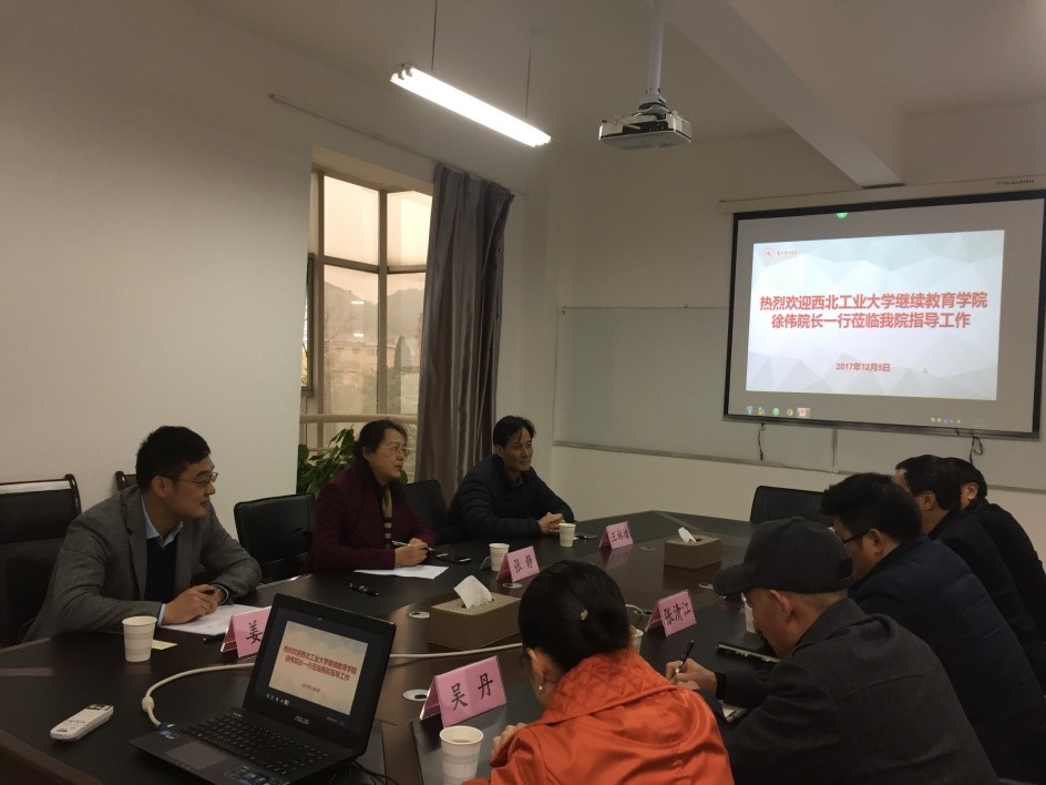 本网讯 (卢源源)12月5日上午,西北工业大学继续教育学院张静书记一行,到乐游棋牌继续教育学院指导交流,洽谈现代远程教育校外学习中心(点)建设事宜。座谈会由副校长梁杰主持,校长助理张清江及乐游棋牌继续教育学院相关同志参加了座谈会。