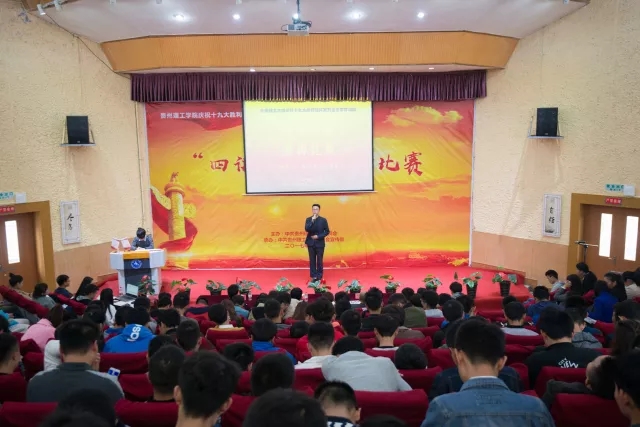 本网讯(宣传部 林春燕)为认真贯彻落实中央、省委、省委教育工委、校党委关于学习宣传贯彻落实党的十九大精神的相关工作部署,激励全校师生奋发有为,服务学校建设发展,开创理工发展新篇章,11月17日下午,贵州理工学院庆祝十九大胜利召开系列主题教育活动之“四讲四重”演讲比赛在逸夫学术交流中心小报告厅举行。