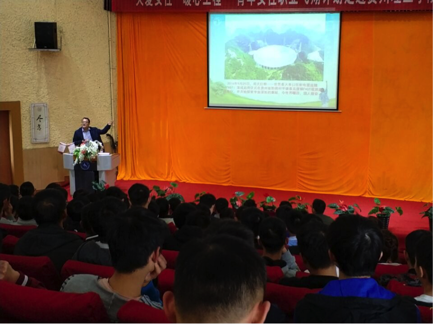 宋建波副校长是大射电望远镜第二轮贵州选址项目负责人、中国天眼FAST台址大窝凼洼地的推荐者。这场讲座既是一次天文学知识的普及,又是对学生学术意识的启迪和培养,更是一场别开生面的思想教育活动。宋建波副校长从同学们熟悉的盘古开天地、女祸补天、夸父逐日、嫦娥奔月等引发开来,从古人对宇宙的渴望和猜测,讲到天文学的起源、发展,讲到天文望远镜的出现、升级、换代;从中国“天眼”横空出世,到回顾“天眼”最终确定落户平塘县大窝凼历经13年漫长艰辛的两轮选址路;从参与选址工作者们坚强的毅志和精神,到严谨的科学态度和无畏的创新精神;从选址工作的“技术含金量”,到中国“天眼”落成所蕴含的巨大价值……古今中外、学术科普,幽默风趣、深入浅出,会场上不时传来掌声和欢笑声。