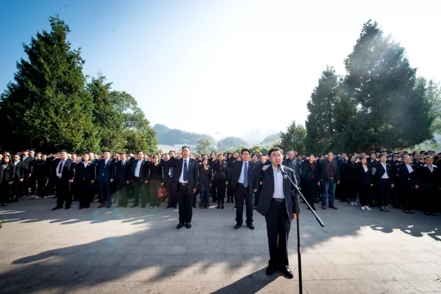 本网讯(宣传部 巫敏) 为进一步加强革命传统教育,学习革命先辈的崇高精神,明确肩负的重大责任,增强为实现党的十九大提出的目标任务而奋斗的责任感和使命感,11月5日上午10时,贵州理工学院党员领导干部和学生党员200余人聚集在庄严的毛主席塑像前,重温入党誓词,宣示校党委领导班子的坚定政治信念,宣示作为一名普通党员的坚定政治信念。