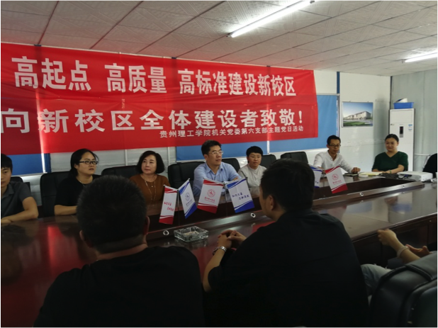 新校区建设指挥部工程部负责人李源同志对支部前来慰问表示感谢,并向全体党员介绍了新校区建设情况。他说,参加新校区建设的全体同志,在校党委行政的正确领导下,以“秉持公心、抛却私心、不忘初心”的姿态努力做到“心中有事业、心中有责任、心中有规矩”,形成风清气正、积极进取、勇于担当的工作局面。全体同志舍小家、为大家,充分发扬“不怕吃苦,敢打硬仗”的精神,努力克服征地难、协调难、手续难等重重困难,全力推动新校区全面建设。目前一期核心区建设正按预期有序推进。