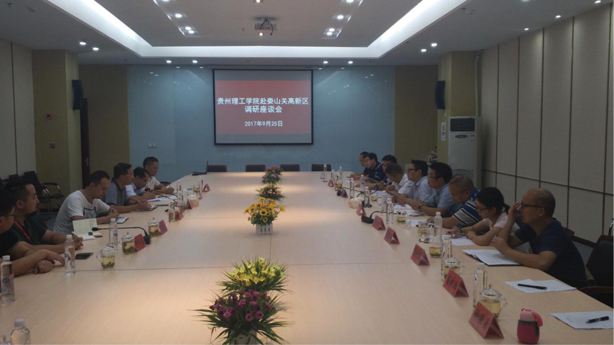 本网讯(发展规划与对外合作处 钟银星)2017年9月25日,副校长宋建波、校长助理张清江率发展规划与对外合作处、科技处负责人及相关专业博士一行前往贵州娄山关高新区开展产学研合作调研。