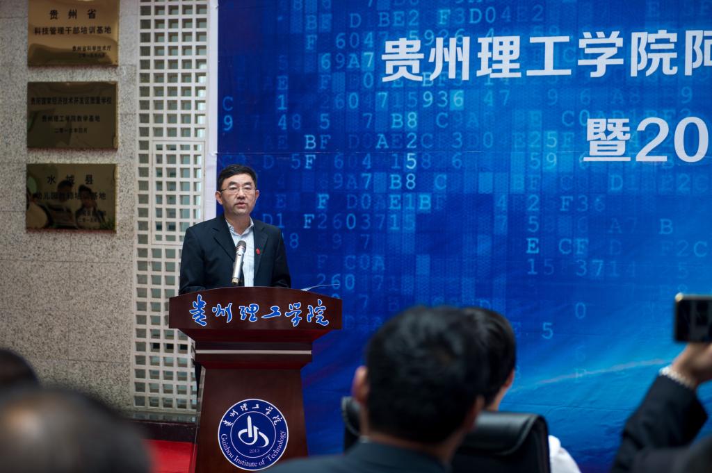 省教育厅巡视员代其平代表贵州省委教育工委、贵州省教育厅,向贵州理工学院表示祝贺,向关心和支持高校建设发展的阿里巴巴集团表示感谢!他充分肯定了贵州理工学院4年来取得的办学成果,希望双方通过务实合作结出丰硕成果,充分发挥好双方优势,把同学们培养成为既有知识又有技能,既有文化又有精神、既有青春又有热情、既有思维又有思考、既有智商更有智慧的大数据人才。殷切希望同学们珍惜4年大学美好时光和美好生活,努力学习掌握知识,刻苦磨炼掌握技能,树立远大理想,加强体育锻炼,期待4年后有一批大数据人才活跃在贵州的这篇热土上,游走在贵州大数据的“云”里。