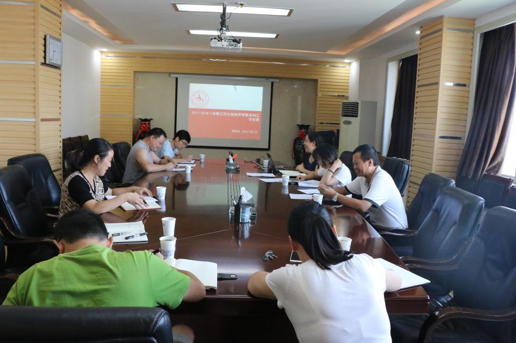 本网讯(教务处郝飞)为保证2017-2018学年第一学期各项教学管理工作有序推进,2017年8月22日下午教务处在第二会议室召开新学期工作安排部署会,副校长梁杰出席会议。