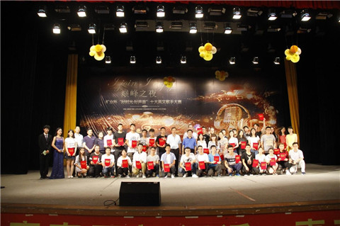 本网讯(矿业工程学院新媒体中心 王明明) 为繁荣校园文化生活,营造积极向上、健康文明的校园文化氛围,为学生提供展示才华的舞台,由大学外语教学部主办、矿业工程学院承办的矿业杯“好时光·好声音”十大英文歌手大赛,于6月8日晚在逸夫大礼堂举行决赛。校党委书记曾羽、副校长梁杰出席活动。