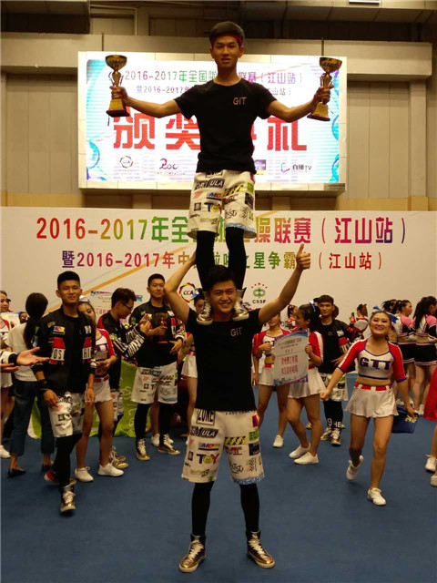 贵州理工学院“疯狂鼠”啦啦操代表队24名队员,作为贵州省唯一的一支参赛队在教练员林丽、苏雪姣、牟玥等几位老师的带领下,组建了3支参赛队伍,他们利用课余、周末、节假日等时间刻苦训练,积极备战。赛场上,凭借整齐划一的规范动作和积极向上的精神面貌,获得了青年丙组双人街舞自选动作、青年丙组集体街舞自选动作、青年丙组花球自选动作3个项目的冠军,由于表现出色,赛事组委会给乐游棋牌颁发了派遣函,获得代表中国参加2017-2018年国际啦啦操系列赛事的资格。