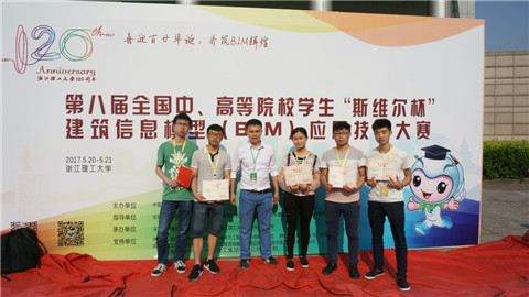 本网讯(经济管理学院 余师远) 2017年5月20日,由中国建设教育协会主办,住建部工程管理和工程造价学科专业指导委员会、全国住房和城乡建设职业教育教学指导委员会指导,深圳市斯维尔科技股份有限公司、浙江理工大学和吉林建筑大学承办的第八届全国中、高等院校学生“斯维尔杯”建筑信息模型(BIM)应用技能大赛在杭州落下帷幕。