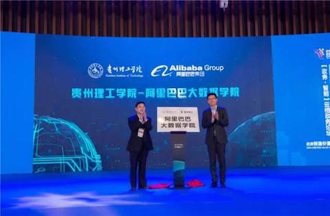 揭牌仪式上,贵州理工学院党委书记曾羽、阿里巴巴集团副总裁胡晓明共同为“贵州理工学院·阿里巴巴大数据学院”揭牌。