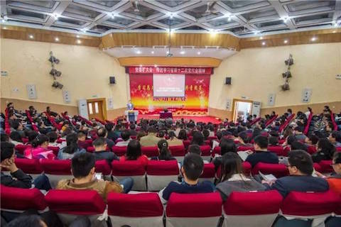 校党委书记曾羽结合出席省第十二次党代会的亲身体验传达了会议精神,并对学校学习贯彻落实会议精神作了安排部署。