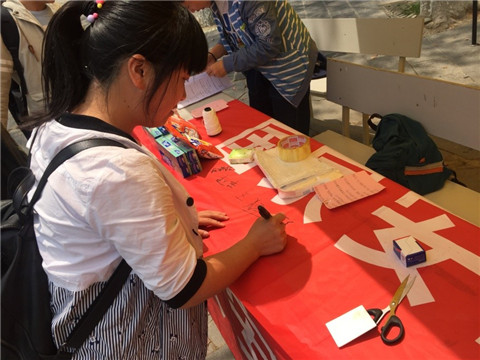 4月14日,保卫处组织学生处护校队在8号公寓沙地球场旁边,开展了国家安全知识有奖问答及“国家安全责任重于泰山”主题签名活动。