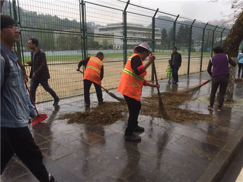 经勘察发现,由于大量冰雹瞬间聚集,混合雨水及杂物,故教室的下水管道被冲爆了管。教室里有几十台电脑设备,一旦被雨水浸泡,后果不堪设想。说时迟那时快,根据现场实际情况,后勤人员果断采取先堵再疏、后更换的抢修策略。即先用拖把、抹布等将漏水口封住,尽量避免雨水继续倒灌,同时,利用工具对管道进行疏通,与此同时,观察所需更换的配件,迅速组织人员进行了更换调配。最后,在雨水未能全面淹没教室前,完成了堵疏换的工作,保住了学校的大量设备和国有资产。为保障次日教学任务的开展,物管科组织人手将冰雹、雨水以及树枝等杂物一并清扫干净。深夜11点,虽风雨交加,冰雹肆虐,忙活的满头大汗的后勤人深深地舒了口气,离开了现场。