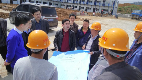 曾羽一行查看了施工单位临时设施搭建现场,对施工单位现场管理提出要求,做到人员管理规范、施工现场安全。