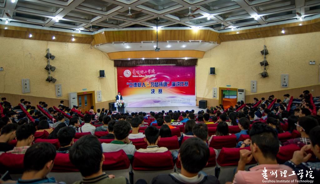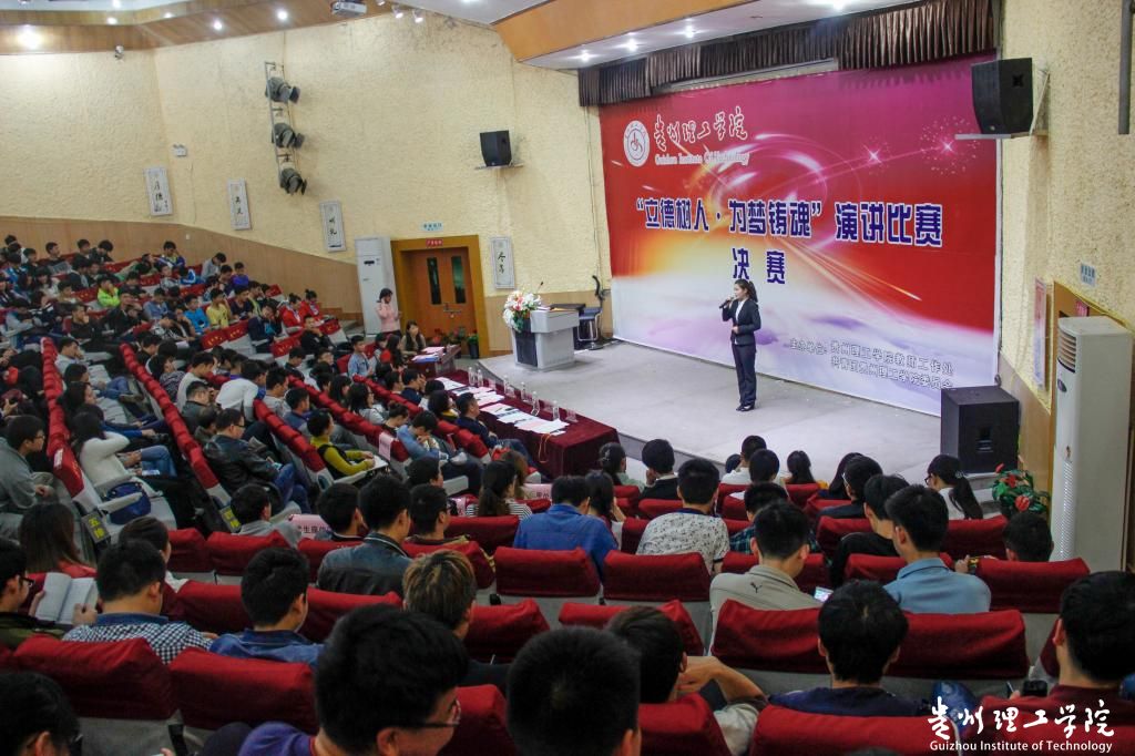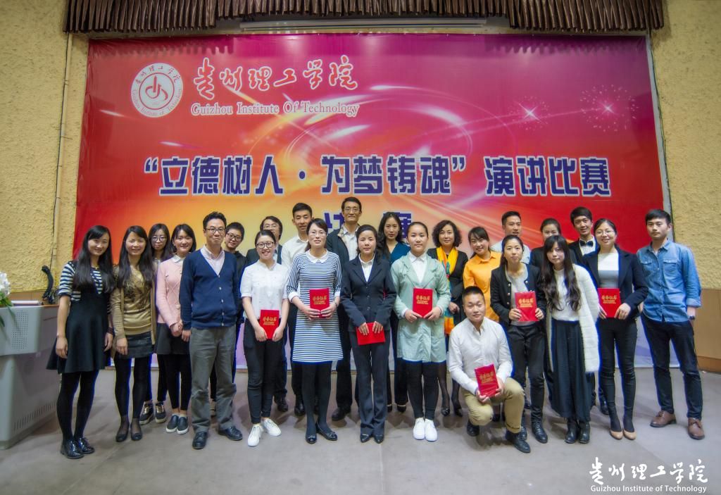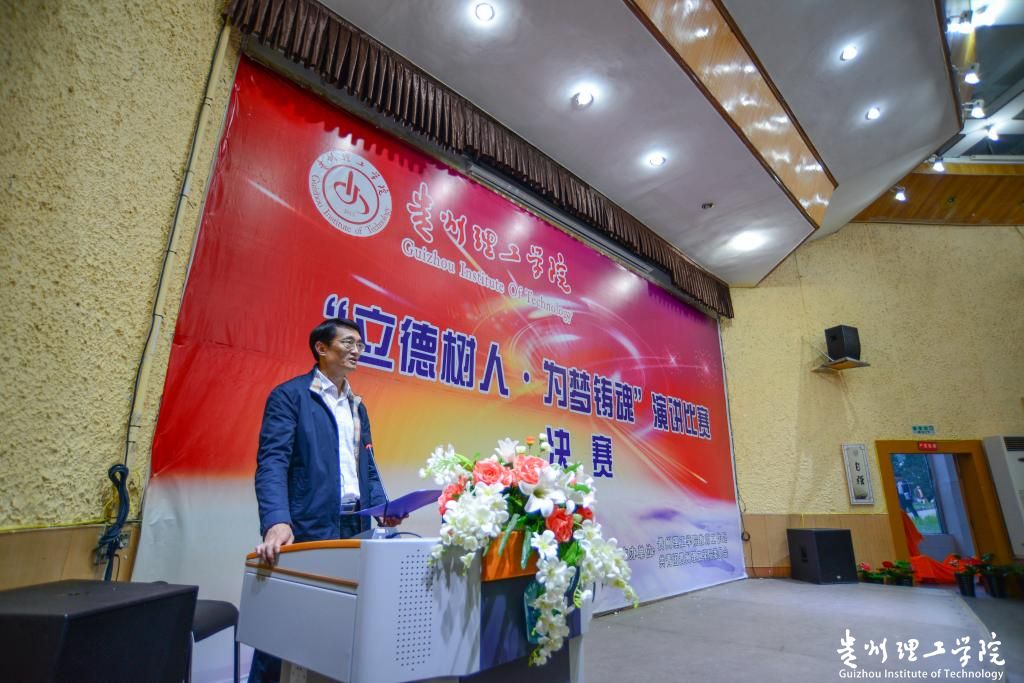 本网讯 4月27日晚,由教师工作处、校团委主办的“立德树人?为梦铸魂”演讲比赛决赛,在逸夫小报告厅举行。校党委副书记宋广强出席,贵州广播电视台综合广播主任播音员、贵州省演讲与口才协会副会长韩洪雷,学工部部长徐元敏,人事处处长高勇,工会副主席熊远兴,大外部党总支副书记袁小松担任比赛评委。