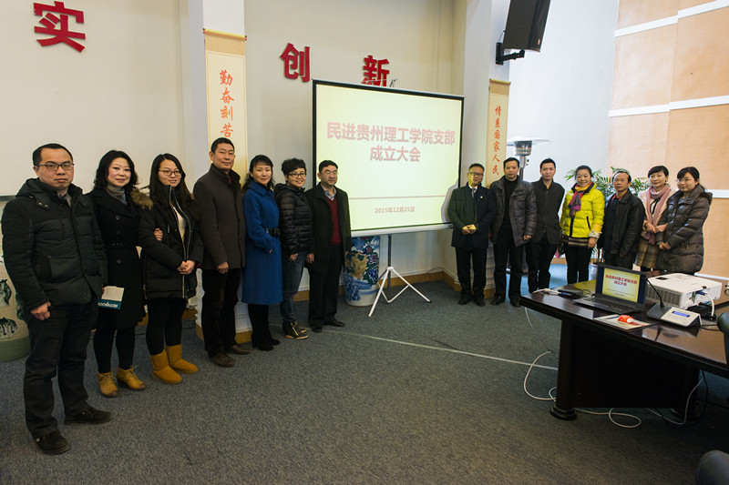 2015年12月25日,民进贵州理工学院支部成立大会在喀斯特会议厅召开,民进省委专职副主委郭子仪、民进省委调研处处长郑久平、民进省委组织处负责人徐倩一行,贵州理工学院党委书记曾羽出席大会,会议由贵州理工学院组织部(统战部)部长蔡红英主持。