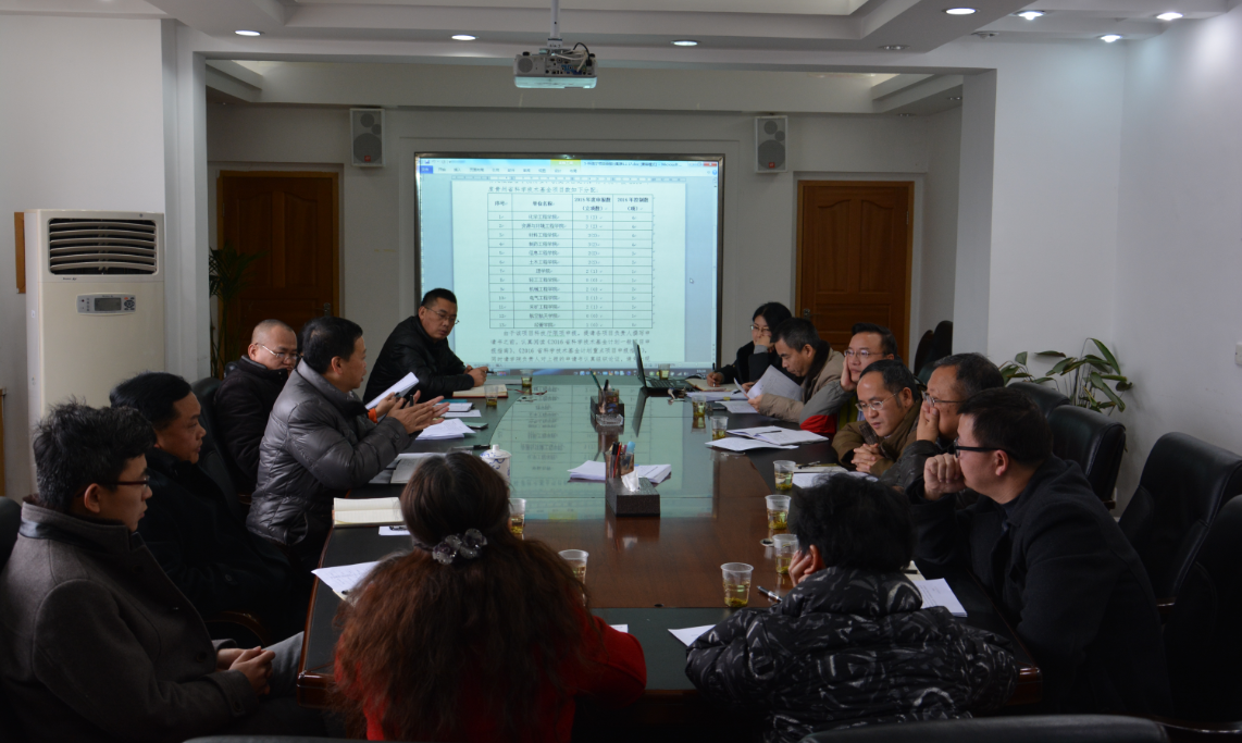 本网讯(科研处尹昌应) 12月21日上午,在行政楼第一会议室科研处组织召开2016年度科研项目申报协调会,副校长梁杰出席。