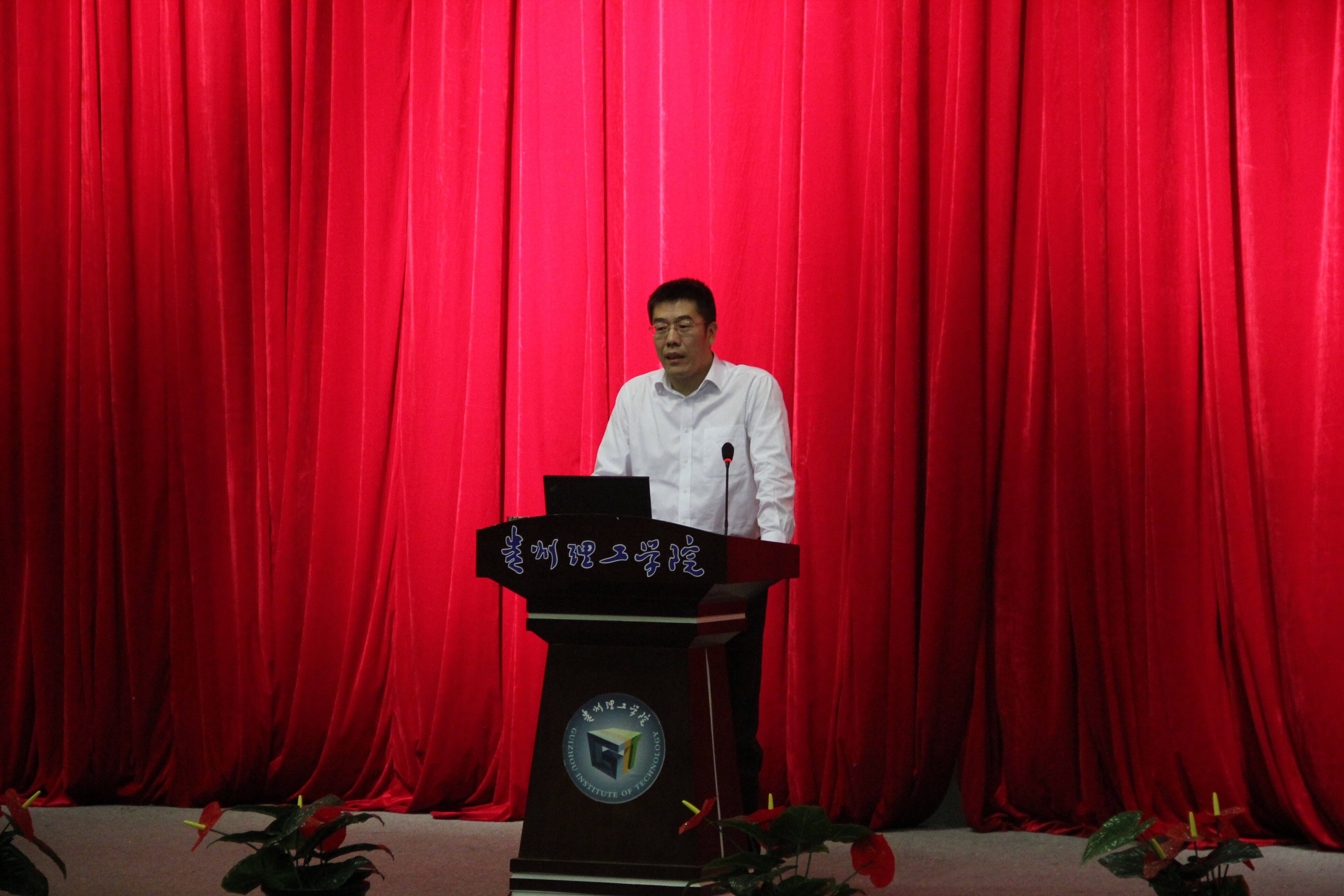 本网讯(杨桂芳) 9月7日,贵州理工学院2014级新生入学教育大会在逸夫礼堂举行,校长龙奋杰、校党委副书记宋广强出席大会。