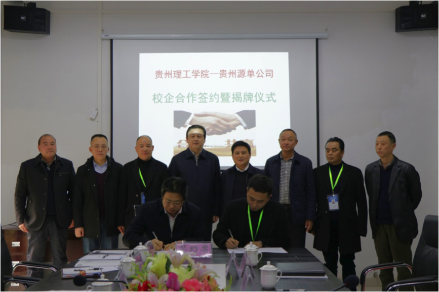 考察结束后,贵州理工学院与贵州省源单新材料科技有限公司签署校企合作协议。贵州理工学院党委副书记张波、副院长苏向东,镇远县委副书记廖尚勇、黔东经济开发区党工委副书记、管委会常务副主任龙明光、镇远县人民政府副县长夏文斌、黔东经济开发区管委会副主任杨勇、黔东经济开发区管委会副主任姚元祥,四川源单(集团)暨贵州省源单新材料科技有限公司董事长梁军、四川源单(集团)总裁王扬保、副总裁吕云伟、财务总监雷林、贵州省源单新材料科技有限公司总经理丁鹏出席签约仪式。在三方相关领导及部门负责人的共同见证下,贵州理工学院副院长苏向东与贵州省源单新材料科技有限公司董事长梁军代表双方签约。