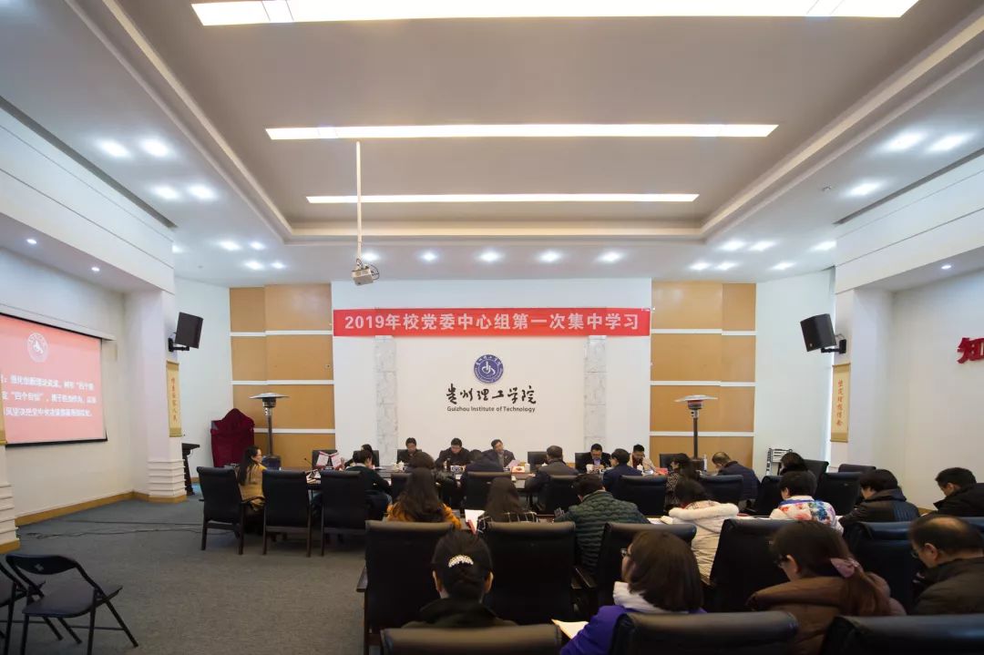 本网讯(党委宣传部 方燕)为认真学习贯彻习近平新时代中国特色社会主义思想,贯彻落实党的十九大精神和习近平总书记在贵州省代表团重要讲话精神,以新气象新担当新作为落实好党中央和省委各项决策部署,高质量开好2018年民主生活会,1月7日,以“强化创新理论武装,树牢‘四个意识’,坚定‘四个自信’,坚决做到‘两个维护’,勇于担当作为,以求真务实作风坚决把党中央和省委决策部署落到实处”为主题的乐游棋牌校党委中心组第一次集中学习会在喀斯特会议厅召开。乐游棋牌曾羽、张波、宋建波、苏向东、胡兴灿、贺梦依出席会议,梁杰列席会议,校直各部门、各教学(教辅)机构党政主要负责人参加学习。