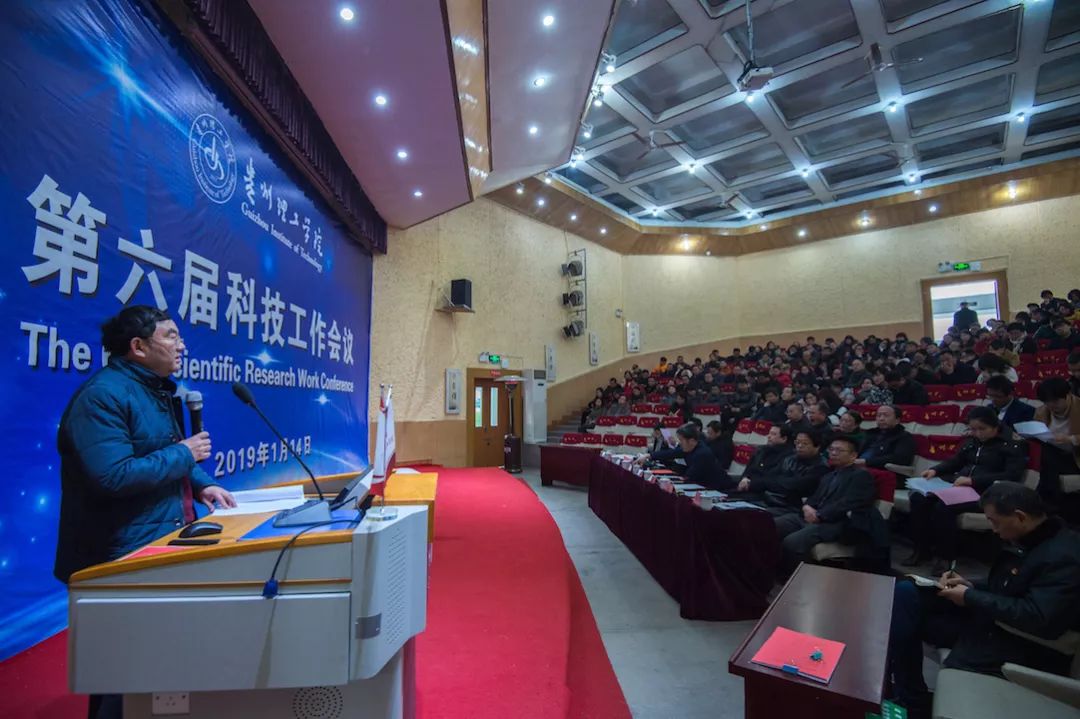 副院长苏向东向大会作《贵州理工学院2018年科技工作报告》,并介绍了2018年度科研奖励情况。