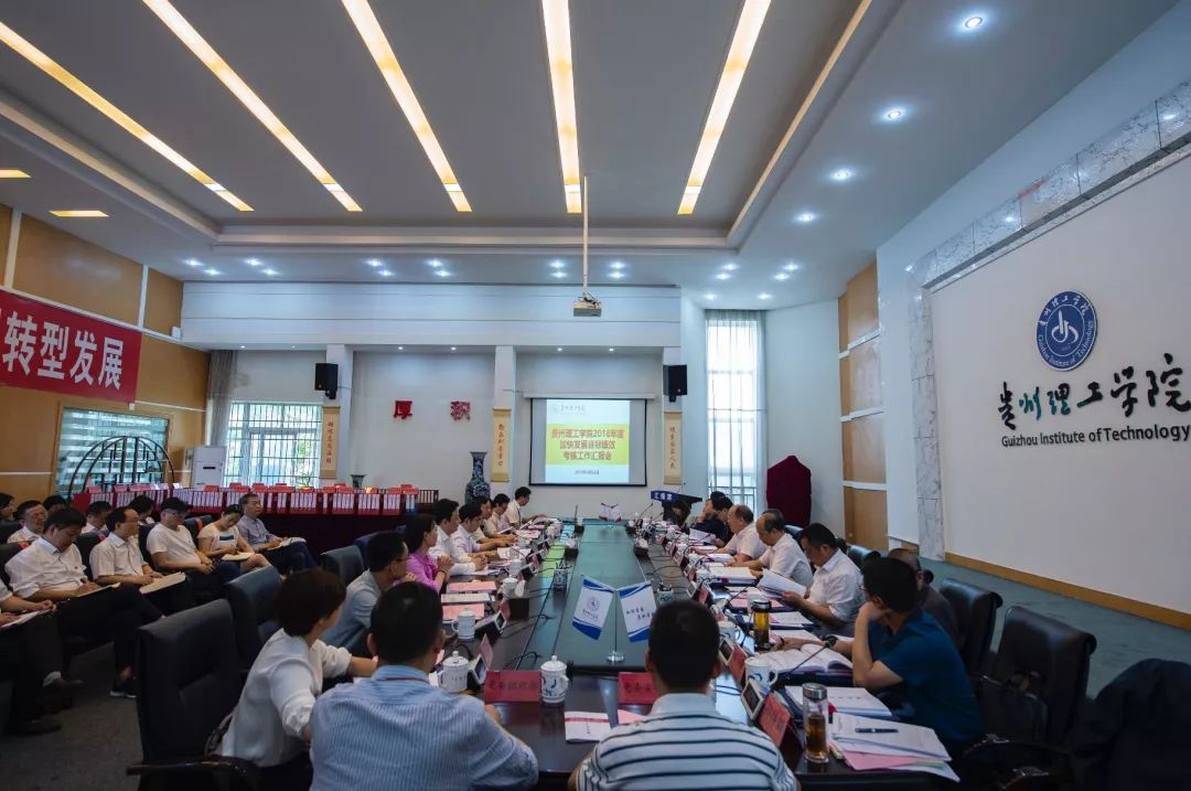 下午的反馈会由石京山组长主持,副组长郭本华代表考核小组进行意见反馈。考核小组一致认为,贵州理工学院领导班子高度重视目标绩效考核工作,2018年学校以习近平新时代中国特色社会主义思想为指导,全面贯彻党的教育方针,学习贯彻全国全省教育大会和全国全省高校党建工作会议精神,落实立德树人根本任务,各项事业取得长足进步和发展,全面完成了2018年的各项工作任务。特别是在党的建设进一步加强,凝心聚力本科教学工作合格评估建设有序推进,新校区建设加快推进,教育教学改革不断深化、教学质量不断提升,产教融合、科学研究取得进一步突破,师资队伍建设力度不断加大,创新创业教育改革成效明显等七个方面亮点突出。同时考核小组建议学校,在加快新校区建设,加强后勤保障服务工作等方面做进一步完善。