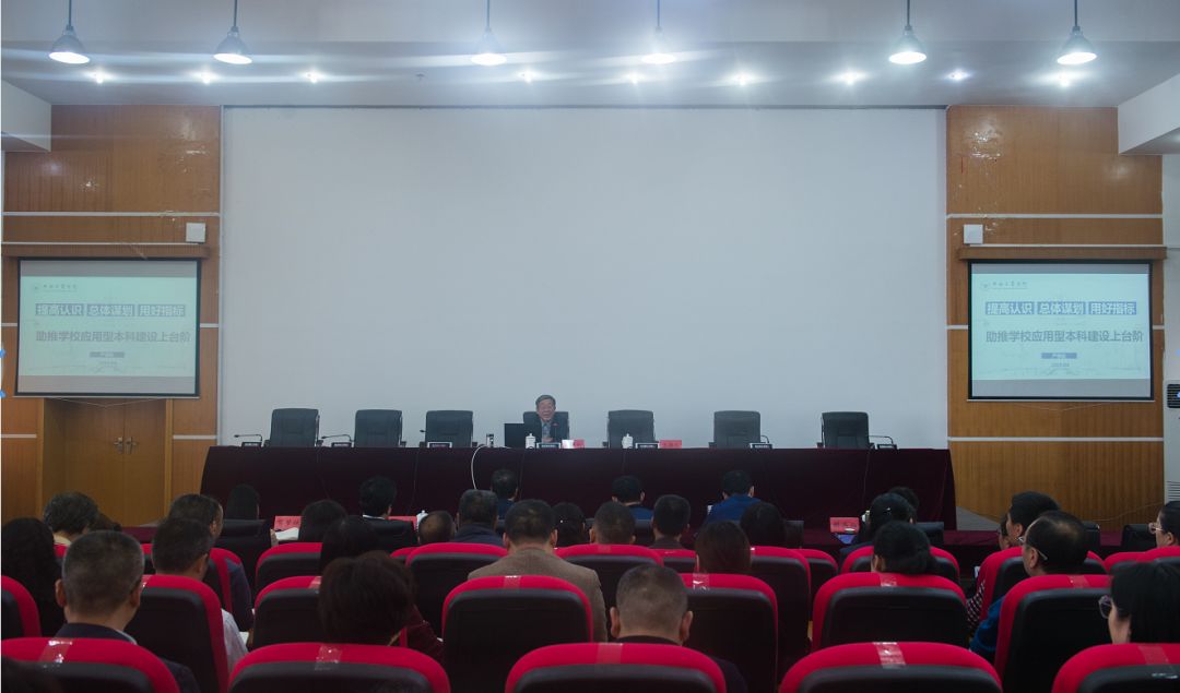 本网讯(党委宣传部 周伟)为进一步提升对本科教学工作合格评估的内涵理解,统一全校上下协力迎评工作的认识,冲刺做好5月20日评估专家咨询会的前期各项工作,4月19日,成都工业学院院长严余松教授受邀做客贵州理工学院,为全体中层以上干部作主题为“提高认识 总体谋划 用好指标——助推学校应用型本科建设上台阶”的专题报告。乐游棋牌曾羽、梁杰、张波、苏向东、胡兴灿、贺梦依出席报告会。