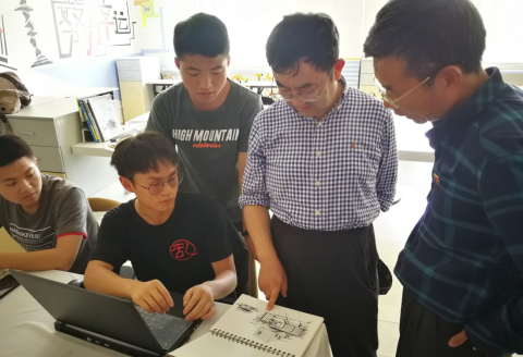 曾羽书记考察了学院模型制作实验室、项目孵化室和GIS与规划设计实验室,听取了实验室负责人对模型制作实验室设备性能特点和应用介绍,并饶有兴趣地参观了模型制作实验室作品。在项目孵化室,曾羽书记还与正在进行创意设计活动的环设172班同学亲切交谈,听取了大家制作的建筑设计的介绍。
