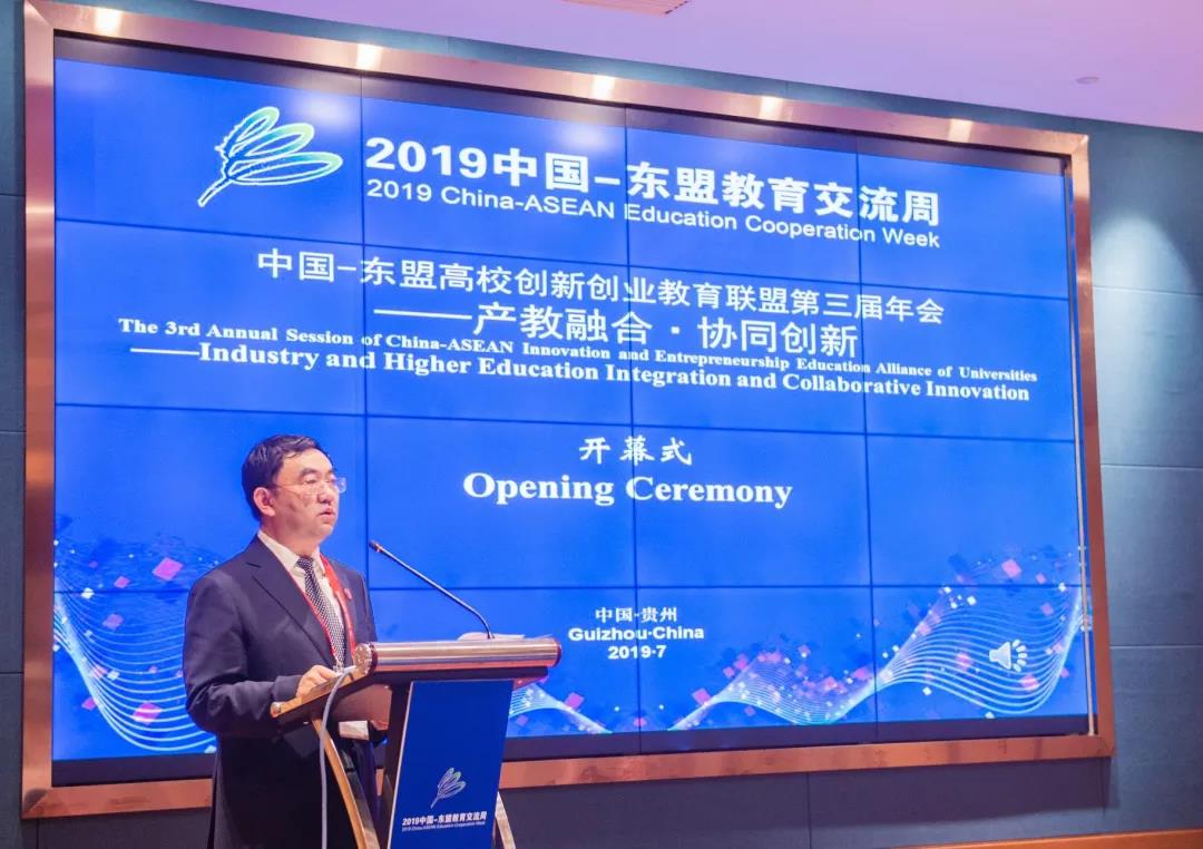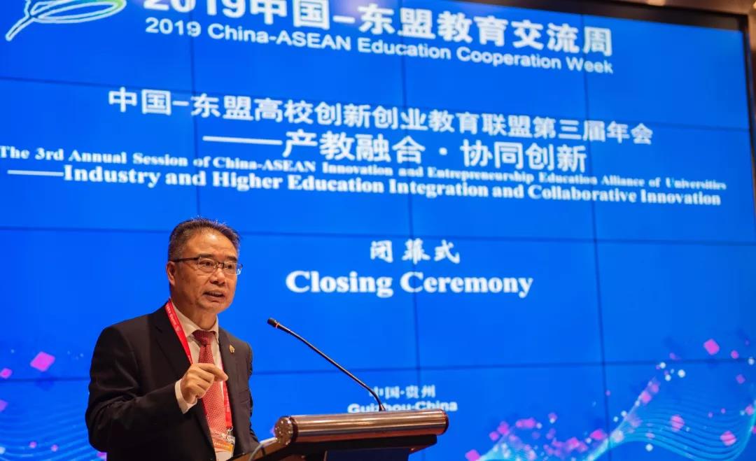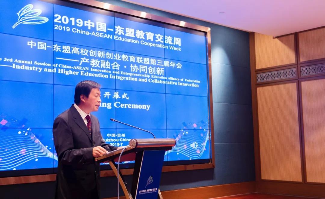 贵州省教育厅巡视员邓厚勇在致辞中表示,近年来,贵州省大力支持高校开展创新创业教育,为高校毕业生搭建低成本、全方位、专业化的创新平台,并引导社会资本设立高校毕业生就业创业基金。贵州与东盟国家在合作上具有天然的地缘优势。希望中国-东盟高校间能够进一步深化交流合作,推动建立中国-东盟教育共同体、创新共同体,在更高水平上开展教育和人文交流合作,在更深层次上开展创新创业人才培养。