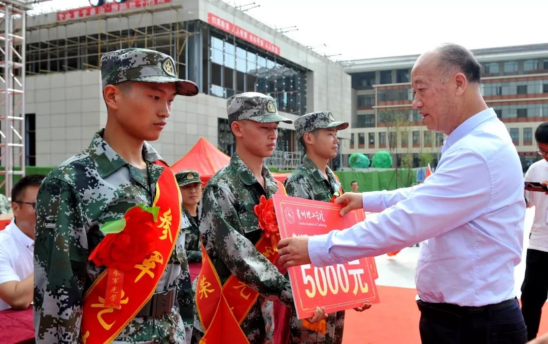 省政协副主席左定超为乐游棋牌贵州理工学院应征入伍大学生代表颁发入伍奖励。