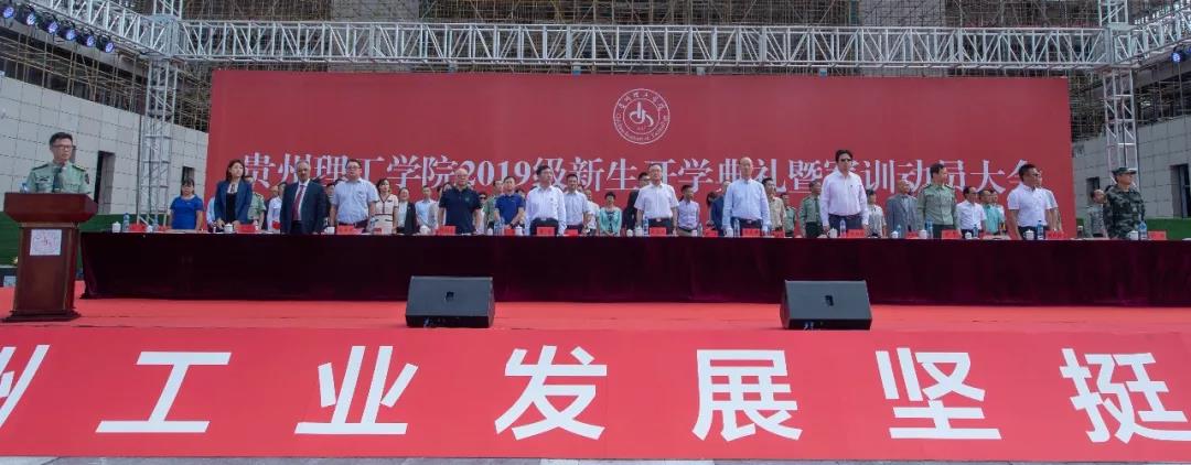 本网讯(党委宣传部 姚楠/文)金风送爽,硕果累累,贵州理工学院贵安校区内朝气蓬勃,2019级的2998名新生戎装待发。9月16日上午,贵州理工学院2019级新生开学典礼暨军训动员大会在乐游棋牌贵安校区图书馆广场隆重举行,省人大常委会副主任、秘书长陈鸣明,省政协副主席左定超,贵安新区党工委委员、管委会副主任许剑龙,贵安新区花溪大学城党工委副书记、管委会副主任潘军,乐游棋牌曾羽、苏向东、梁杰、宋建波、胡兴灿、高勇,参训部队领导及乐游棋牌合作办学嘉宾出席大会。典礼由贵州理工学院党委副书记、军训团政委高勇主持。