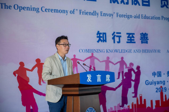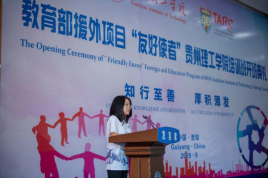高勇代表学校对教育部援外项目“友好使者”贵州理工学院培训班学员们的到来表示热烈的欢迎,希望各位友好使者们在接下来的两周里用心学、用心看、用心写,在学习和体验中国文化的同时,也同中国的朋友、老师们分享马来西亚的优秀文化,充当中国和马来西亚文化交流的桥梁。