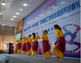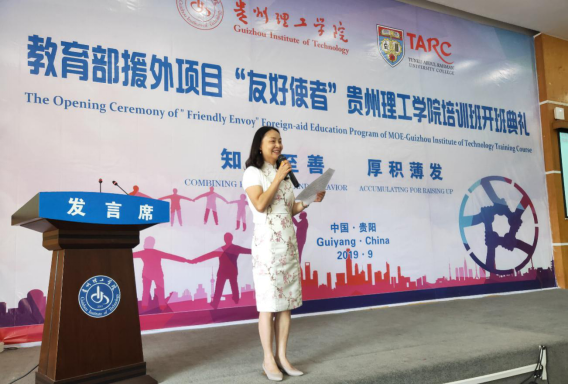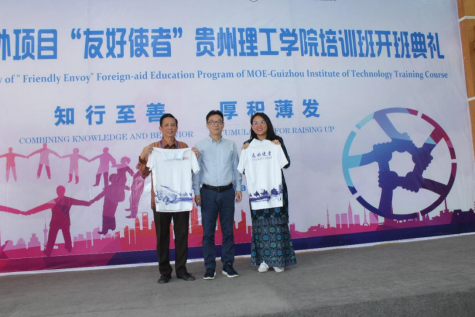 典礼上,贵州理工学院党委副书记高勇为拉曼大学学院教师赠送“友好使者”培训服装,国际交流与合作处处长乔靖介绍了教育部援外项目,老师们为“友好使者”培训班学员代表佩戴了校徽。