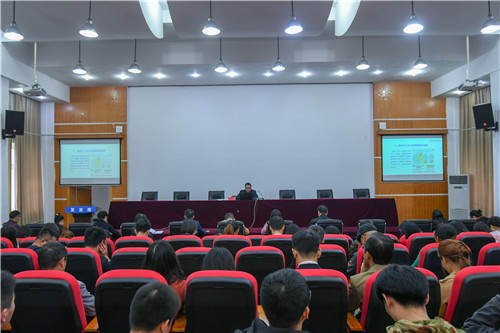 本网讯(发展规划与对外合作处 冉景榆/文)根据学校“不忘初心、牢记使命”主题教育的安排部署,10月23日下午,副院长宋建波在喀斯特报告厅以“坚守初心使命 践行立德树人——贵州理工学院办学特色与发展之路”为题为师生党员讲授了一堂主题鲜明、内涵深刻的专题党课。