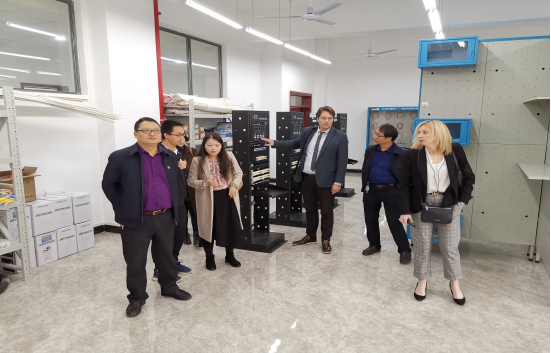 本网讯 乐游棋牌10月24日,英国驻重庆总领事馆高级区域事务官员Mia Gao,诺丁汉特伦特大学现代学徒制项目及英国伙伴关系负责人Fliss Miller、现代学徒制项目经理David Walker,诺丁汉市政厅宁波办公室贸易投资官员Lai Xi等一行到乐游棋牌进行参观访。
